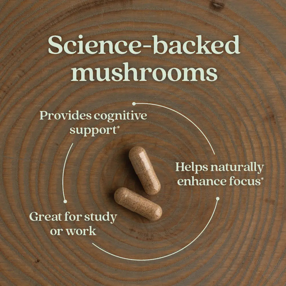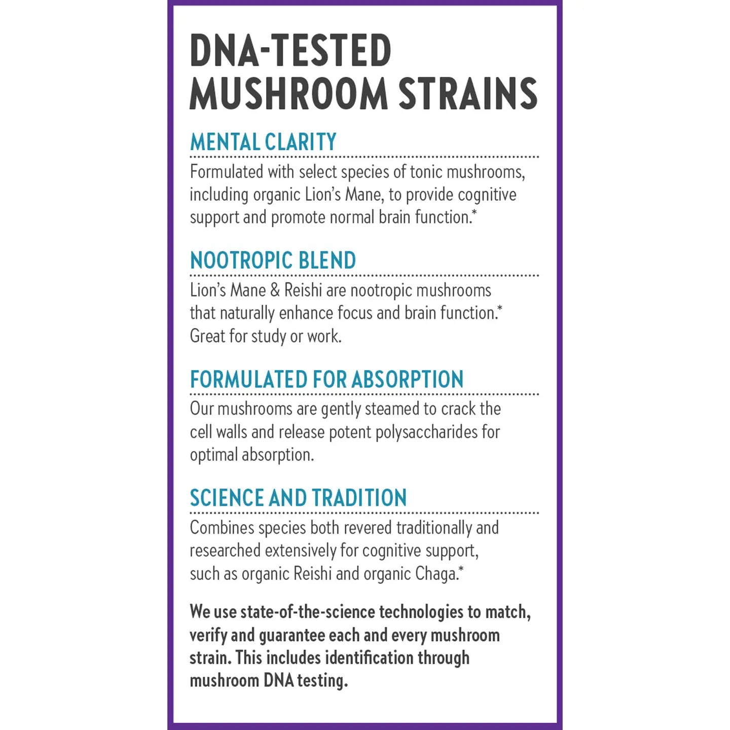 Support clear thinking with a full-spectrum nootropic made from USA-grown, certified organic Lion’s Mane. Our mushrooms are gently steamed to crack the cell walls and release beneficial polysaccharides, helping your body absorb what it needs. Just two capsules a day to help maintain cognition, focus, and everyday brain function.*